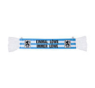Immer dabei: Der blau-weiß-gestreifte Autoschal kann ganz einfach mit den Saugnäpfen an der Autoscheibe oder an anderen glatten Flächen befestigt werden. Der TSV 1860 München-Schriftzug wird dabei auf beiden Seiten von dem Münchner Löwen eingerahmt. Auch unterwegs Flagge für den Lieblingsverein zeigen!